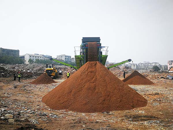 2019年2月,湖南寧鄉客戶購買了鄭州華潔公司的WAF380輪胎移動式建筑垃圾破碎站和WAS380輪胎移動式建筑垃圾篩分站,通過對建筑垃圾分類分級破碎、篩分,生產出0-5㎜、6-10㎜、10-20㎜三種不同粒度的建筑垃圾再生骨料,用來生產制作環保磚及做道路建設水穩層、墊層骨料,既節約資源,又保護環境,實現環境效益、社會效益和經濟效益的統一。