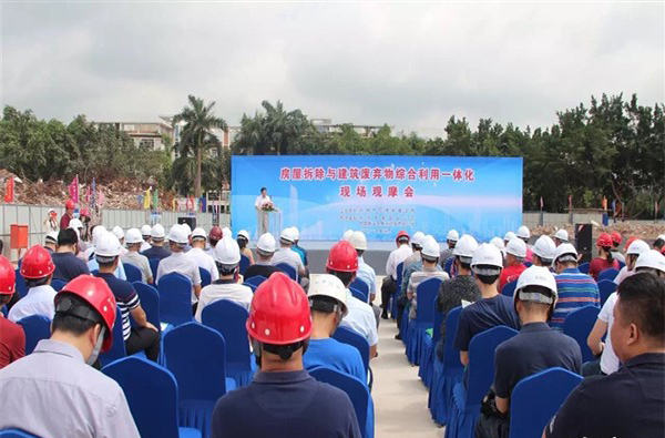 南山建工村華泰小區房屋拆除產生建筑廢棄物總量約35000立方,深圳綠悅使用鄭州華潔整套履帶式移動破碎篩分生產線除去建筑廢棄物中的泥土等雜質,再通過建筑廢棄物破碎生產線將建筑廢棄物破碎成不同粒徑的再生骨料。再生骨料可直接用于后期建設及周邊建設工程的基坑回填、路基水穩層填筑等,或供給混凝土攪拌站和預拌砂漿生產企業,用于生產再生骨料混凝土和預拌砂漿,或用來生產再生建材產品,實現了資源再生。在深圳市住房和建設局舉行的 “房屋拆除與建筑廢棄物綜合利用一體化現場觀摩會” 中,深圳綠悅使用的鄭州華潔履帶式移動破碎篩分站產生了強大的影響力,也頗受關注,深圳特區報、深圳衛視第一現場、深圳商報等多家媒體進行了宣傳報道。