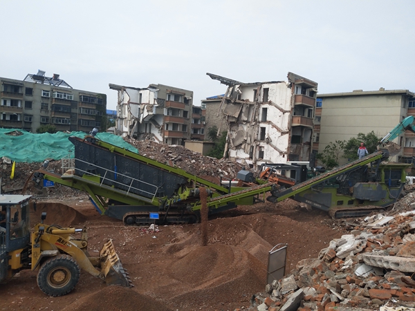 工藝三:DPF建筑垃圾專用移動(dòng)破碎站。采用DPF移動(dòng)破碎站來將廢棄混凝土和廢棄磚石研發(fā)粗細(xì)骨料,移動(dòng)破碎站處理后的再生建筑材料用途廣泛,用于研發(fā)相應(yīng)強(qiáng)度等級(jí)的混凝土、砂漿或砌塊、墻、板、地磚等建材制品。粗細(xì)骨料添加固化類材料后,又可用于公路路面基層,廢棄路面瀝青混合料可按適當(dāng)比例直接用于再生瀝青混凝土,及廢棄道路混凝土可加工 成再生骨料用于配制再生混凝土等。